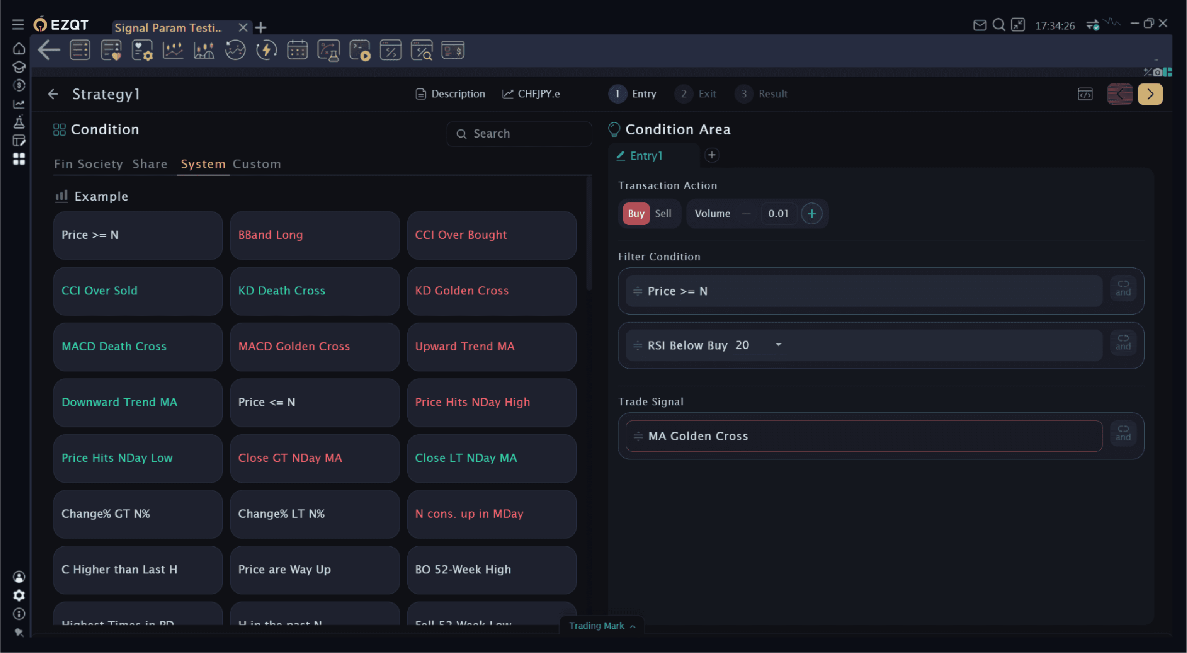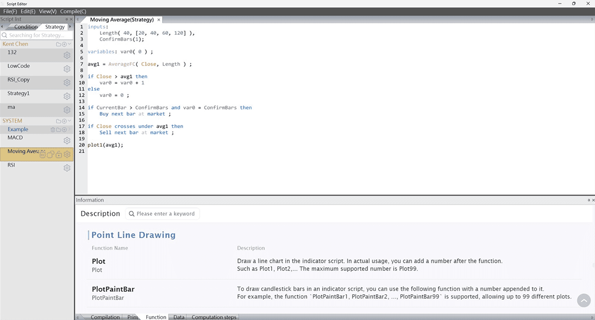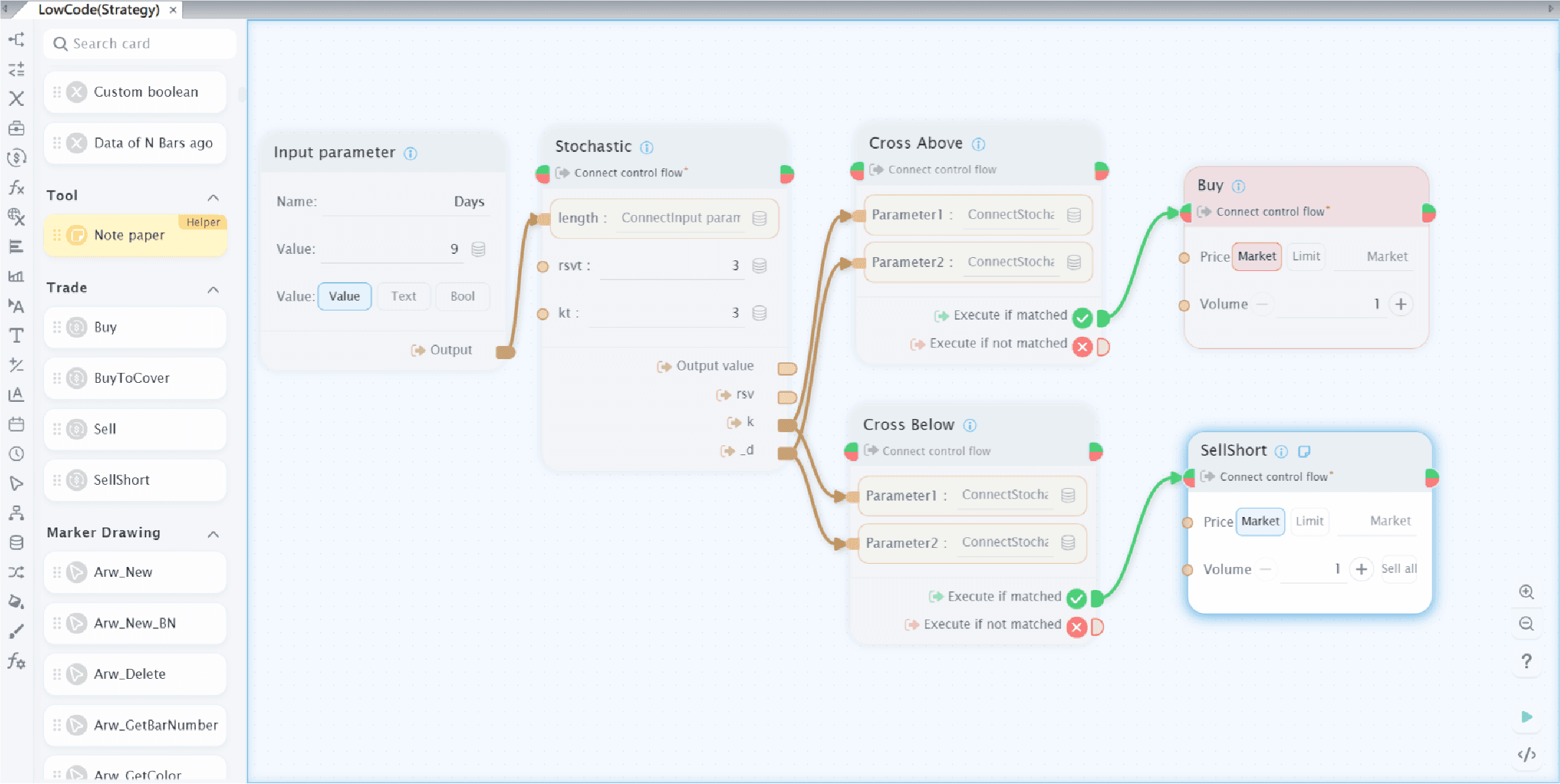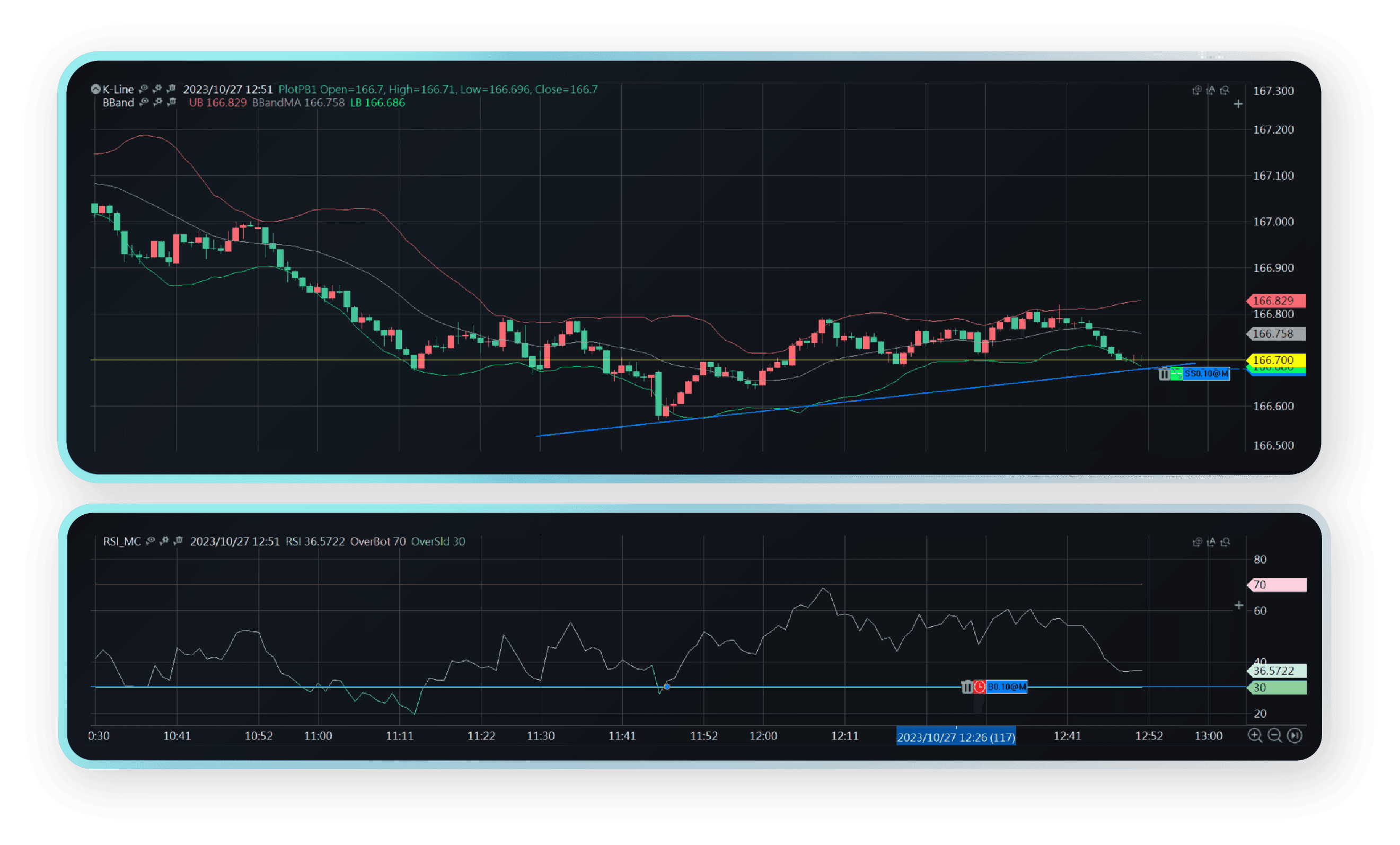 完善的自動化交易運算中心,讓用戶能即時監控所有交易策略並隨時檢視運行圖表損益,更有畫線即訊號的直覺操作,只需透過繪製線段即可簡單設置交易條件,實現從監控到執行全面自動化的低壓力投資體驗。