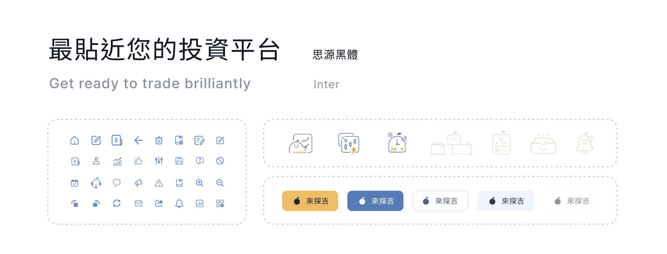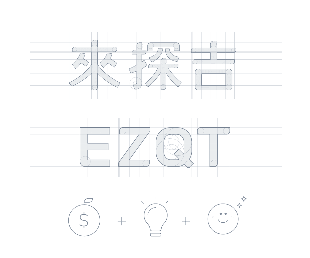 Logo 設計以象徵發財的橘子為視覺主體,透過正負空間結合象徵投資策略的燈泡與獲利喜悅的微笑剪影,象徵能將投資想法轉化為實際收益,並在色彩上使用投資藍與探吉橘的互補搭配,在投資產品的專業信賴感與學院社群互動的親近感之間取得平衡。